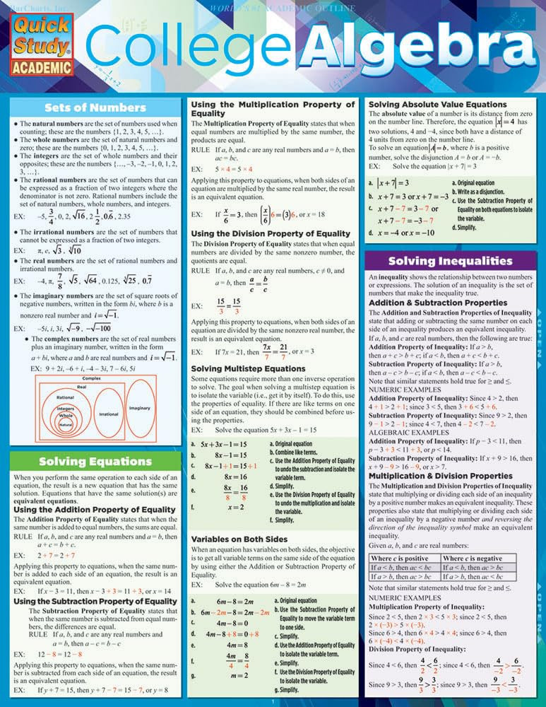College Algebra QuickStudy Laminated Reference Guide (QuickStudy Academic)