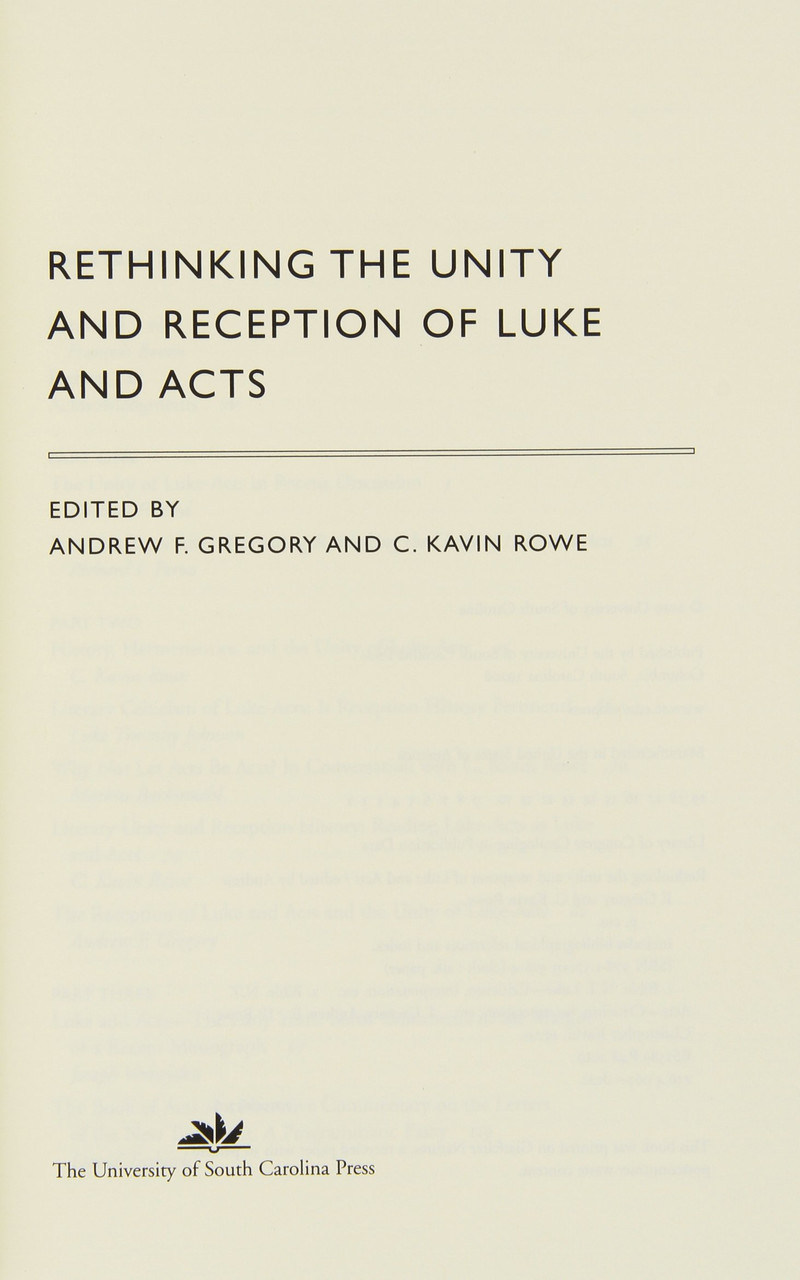 Rethinking the Unity and Reception of Luke and Acts by Andrew Gregory is available now for quick shipment to any U.S. location! Over the years we have learned how to provide the best prices on high quality Bibles, Bible Commentaries, Devotionals, and other Biblical literature, a role that we are proud and humbled to hold. We know how unnecessarily overpriced Christian books can be so we have made it our mission to ensure that everyone has access to Christian Bibles and Christian Literature at affordable prices. Just add the book to cart and complete the checkout process for immediate shipment. We gladly accept returns for a full and easy refund if you have any problems whatsoever.