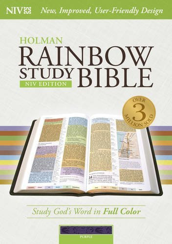 NIV Rainbow Study Bible Purple LeatherTouch Indexed by Holman Bible Staff is available now for quick shipment to any U.S. location! This is a high quality used book that is ready for prompt shipment to any U.S. Location. Over the years we have learned how to provide students with cheap prices on books with fast shipping. We know how overpriced books and textbooks can be so we ensure that students have access to those same books at affordable prices. This 2015 edition book is in good condition or better. Just complete the checkout process for this book and it will be shipped to you for immediate use.