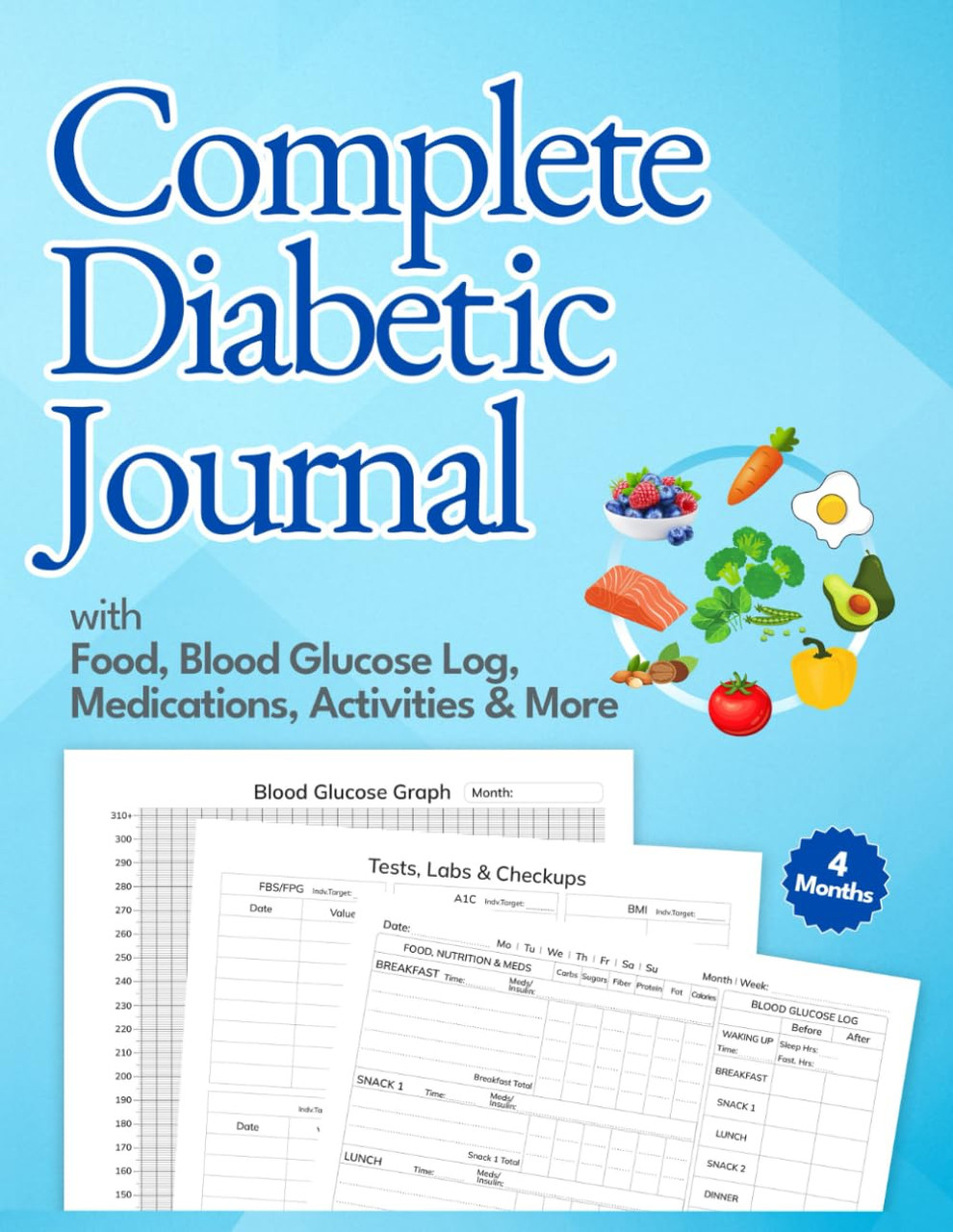 Complete Diabetic Journal with Food Blood Glucose Log Medications Activities & More by Golden Owl Press
